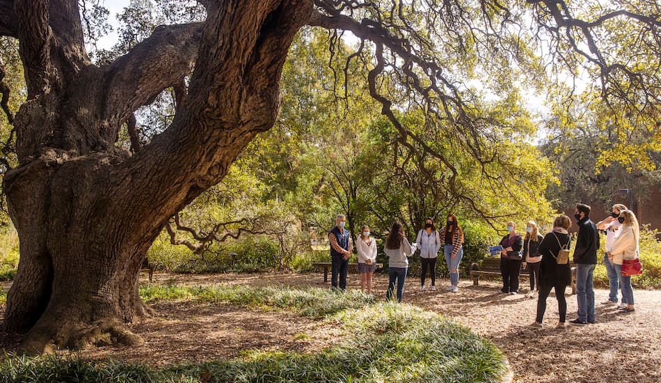 Our in-person campus tours are led by current students and are the best way of experiencing life at St. Edward's. You'll see campus landmarks, like the Red Doors and Sorin Oak, and get a feel for Austin with our beautiful skyline.
