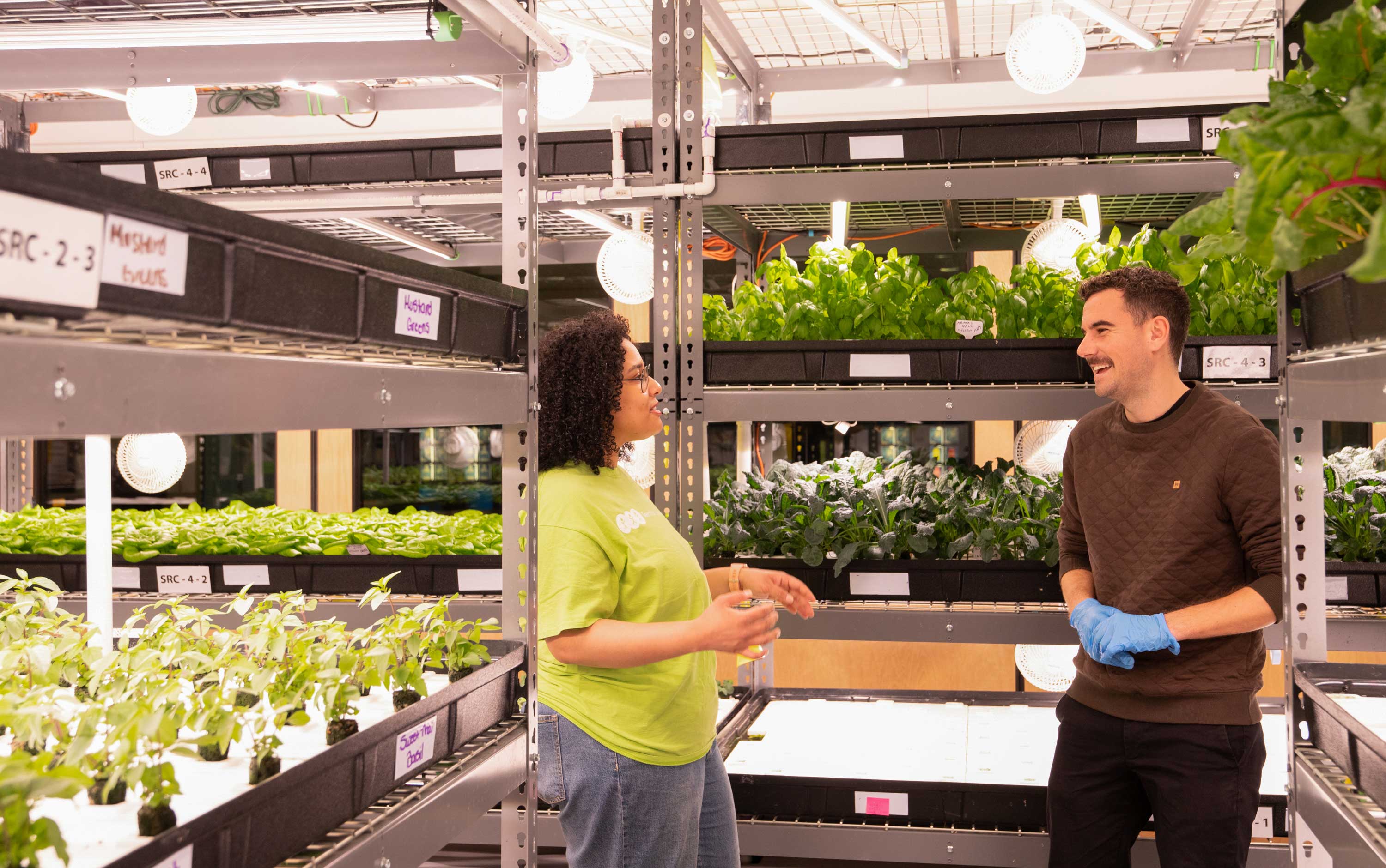 TFFJ retrofits campus spaces into indoor hydroponic farms, where plants are grown in containers of water rather than soil. The technique allows farmers to grow year-round, even in cold climates.