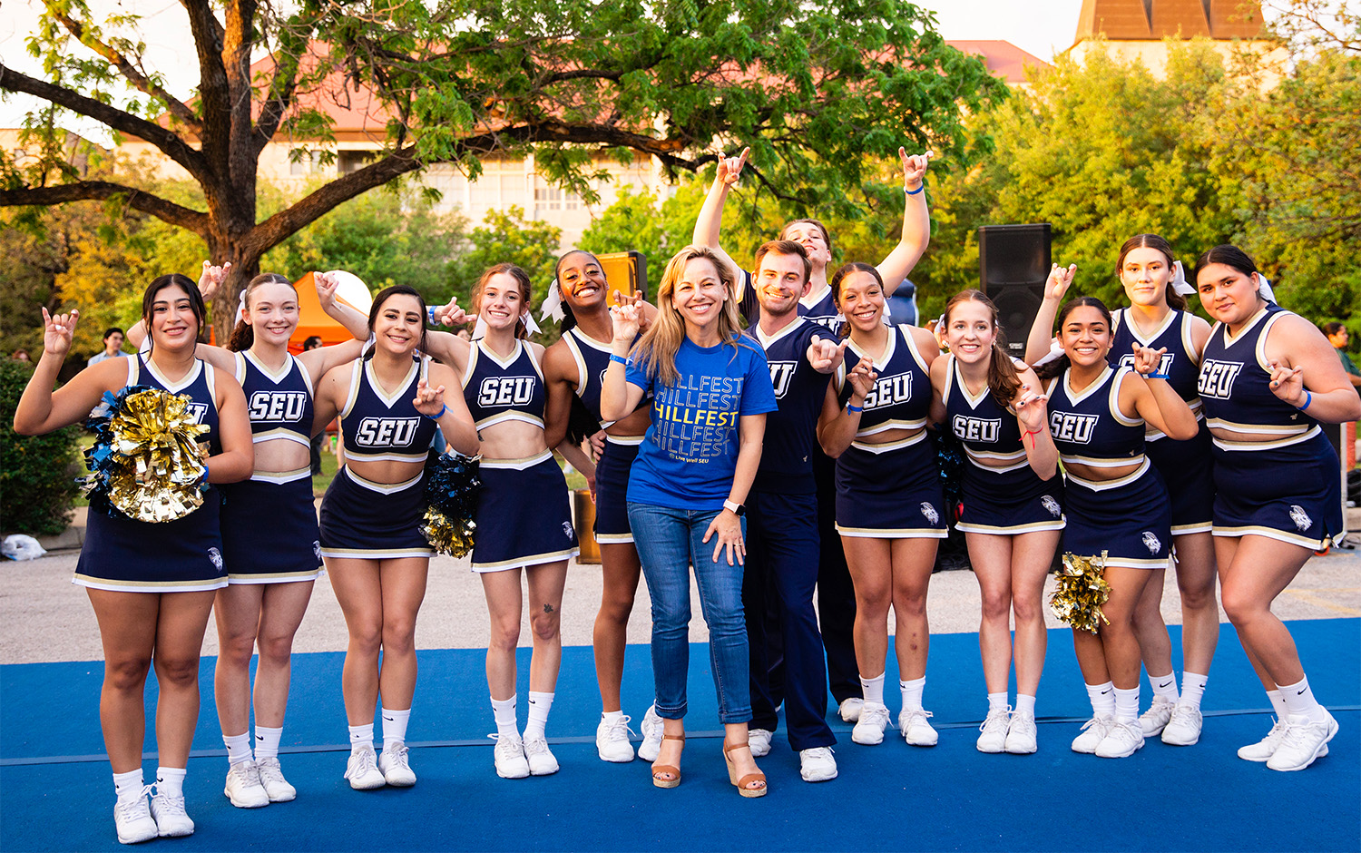 Over the last two years, President Montserrat Fuentes has led St. Edward’s through transformative change, embarking on Strategic Plan 2027 and establishing the groundwork for becoming a destination university for a more just world. Throughout the past year, her commitment to lifelong learning and community engagement was evident whether in the classroom, on campus, in the Austin area or around the country. We invite you to take a look back at some of the highlights from our president’s 2022-2023 academic year on the hilltop.