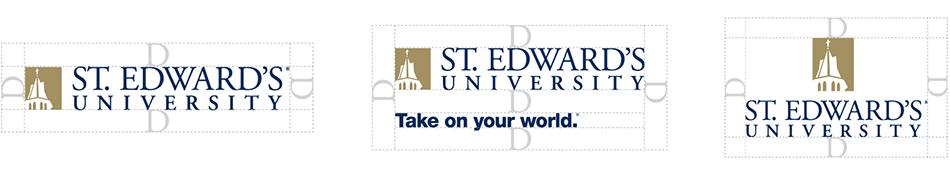 At a minimum, the clear space around the logo should be equal to the height of the upper-case “D” in “St. Edward’s” to maintain legibility and prominence. In addition, other logos should not be placed right next to the St. Edward's logo, possibly giving the appearance of a partnership when one does not exist.