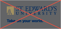 The following violations of the logo negatively affect the integrity of the St. Edward’s brand. Please reach out with questions if you’re unsure if you’re using the logo correctly.