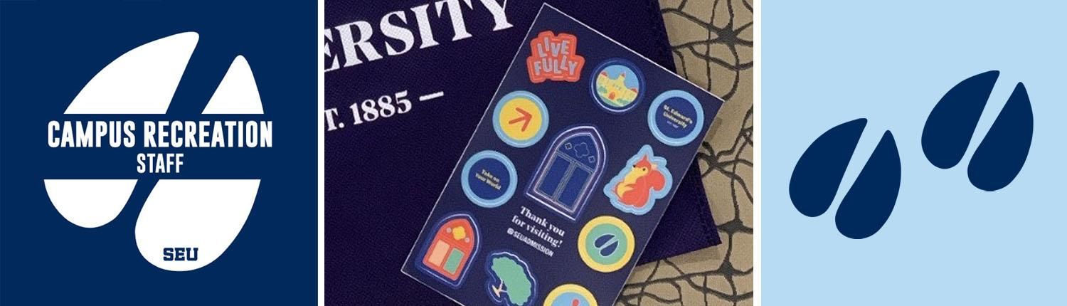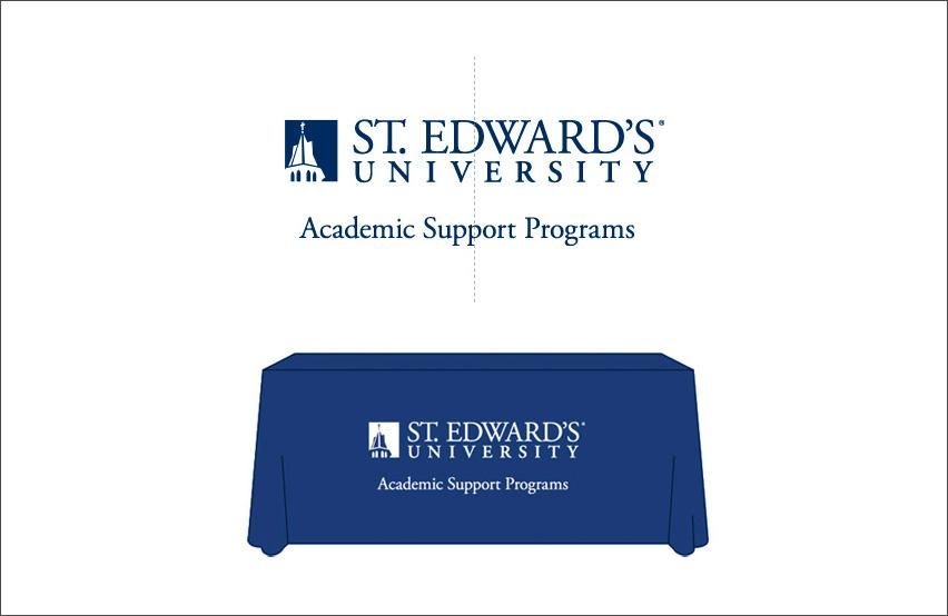 - Apparel, Merchandise, and Promotional items — A branded graphic can be the only mark used on apparel, merchandise and promotional items as long as the primary logo is also represented in some way. For example, giving out LiveWellSEU stress balls that are set out on a table with a table cover prominently featuring the St. Edward's logo.