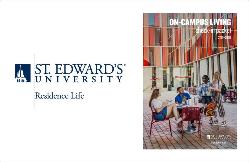 A Branded Graphic Identity must be accompanied by the St. Edward's logo or a Core Identity Logo Lockup however these do not need to be in the same imprint area. For example: