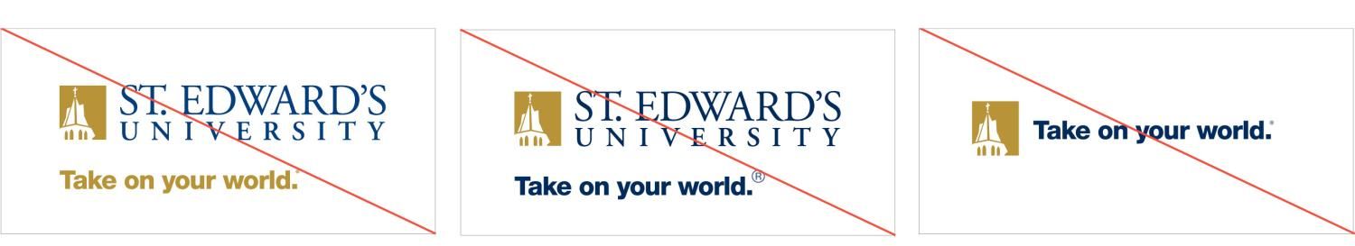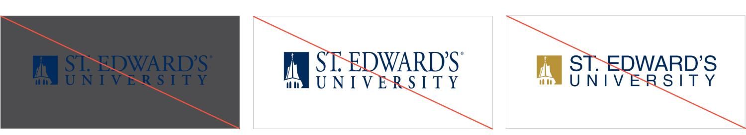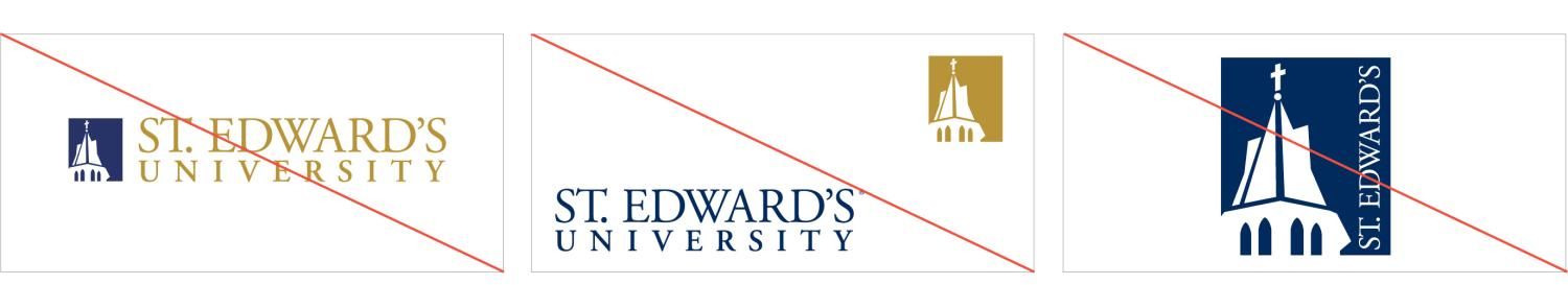 The following violations of the logo negatively affect the integrity of the St. Edward’s brand. Please reach out with questions if you’re unsure if you’re using the logo correctly.
