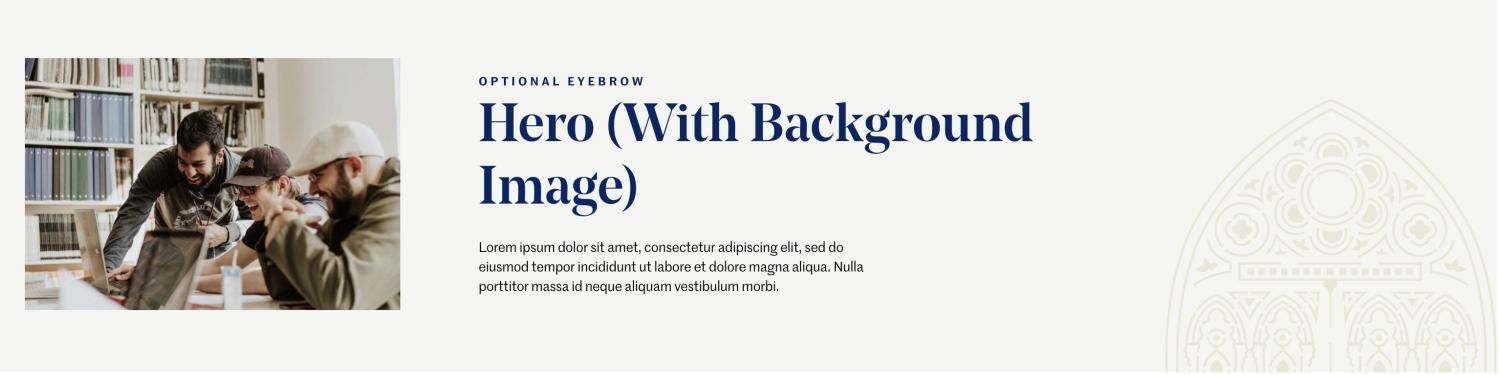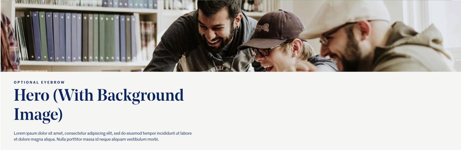 Flexible pages have a variety of options for hero layout that can be selected in the page settings. Heroes can have text only, a background image across the full width of the page, or an image to one side of the text.