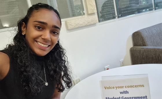 Maharaj began her college journey eager to immerse herself in new experiences and broaden her perspective outside of the laid-back island culture she grew up in. While she immediately got involved in a wide variety of activities her first year on campus — for example, campus tour guide and Chief Finance Officer with the Student Government Association — she quickly found her niche in experiential learning opportunities.