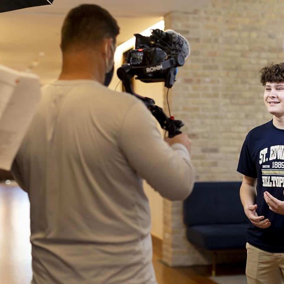 What’s it like to star in The College Tour film production? Busy and fun! Flip through our photos to see how our students played leading roles in conveying the St. Edward’s experience.