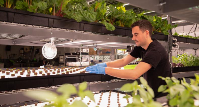 TFFJ retrofits campus spaces into indoor hydroponic farms, where plants are grown in containers of water rather than soil. The technique allows farmers to grow year-round, even in cold climates.