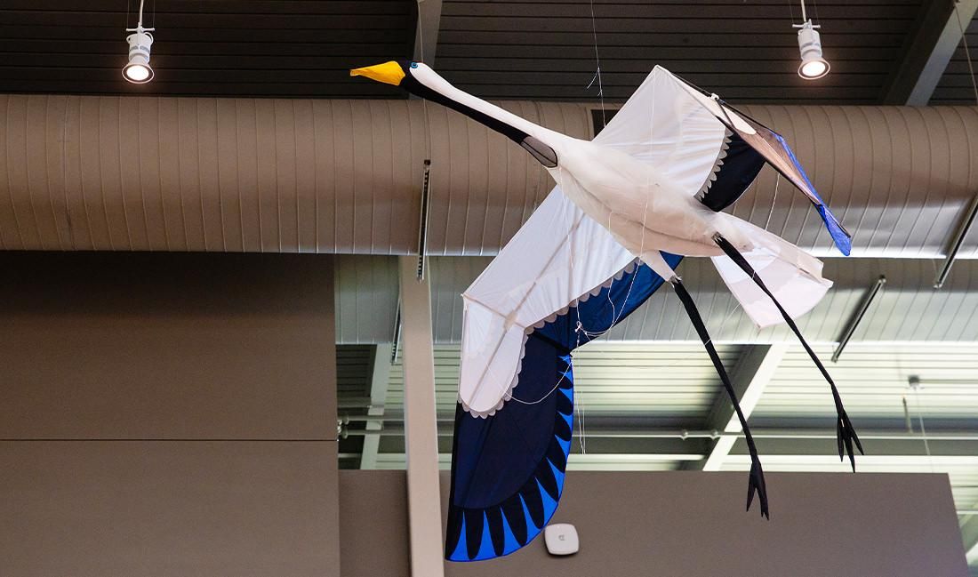Students walking through the Munday Library are gazing above at dozens of vibrant kites draped over the walls and hanging from the ceiling. It’s not just the beauty that’s captivating visitors; it’s the message behind these colorful creations.