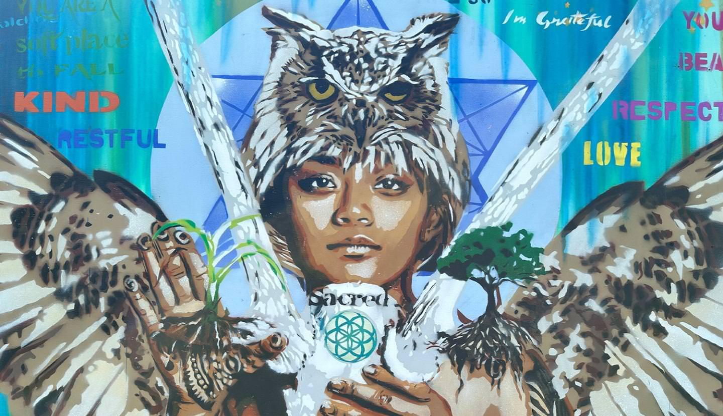 Niz invited students to spray-paint meaningful messages and artwork on one canvas while creating her own masterpiece aligning with her mission for sustainability, environmental awareness and positive change.