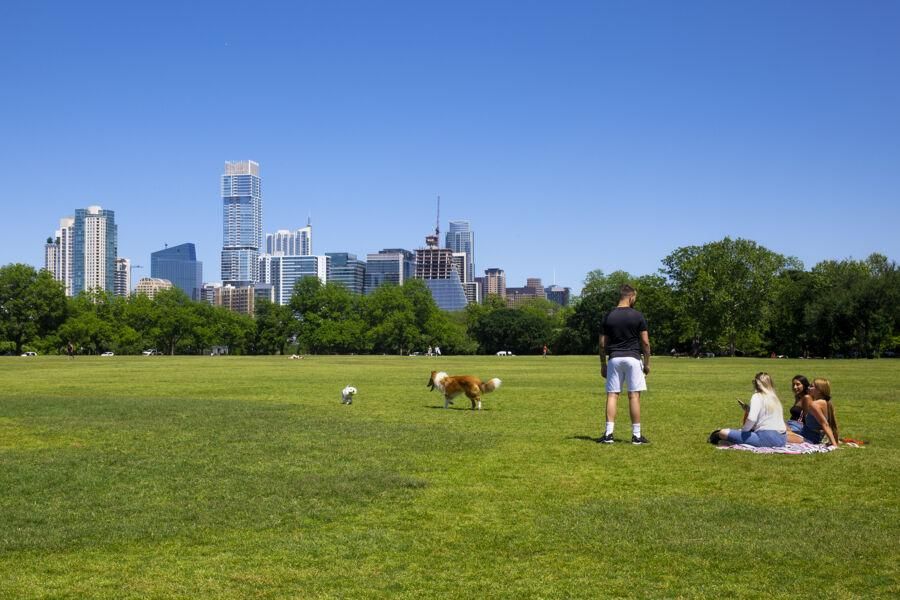 Right in the middle of downtown Austin, Auditorium Shores features scenic trails along Lady Bird Lake, plenty of good parking and lots of spots to picnic or read a book. These features attract plenty of people with their dogs, giving you the perfect opportunity to pet them and play with them (the dogs, not their owners).
