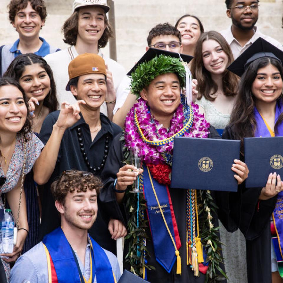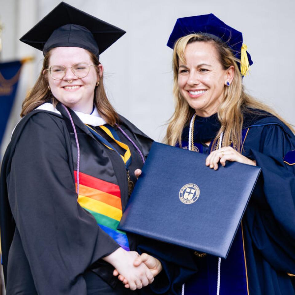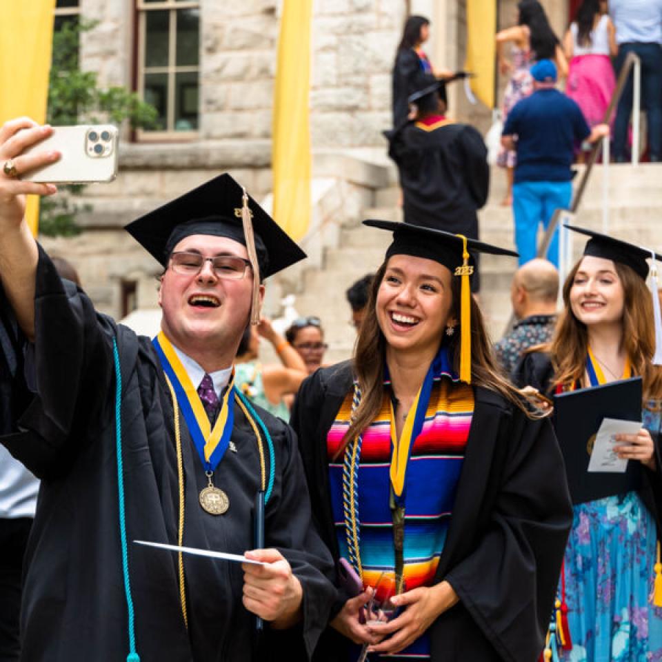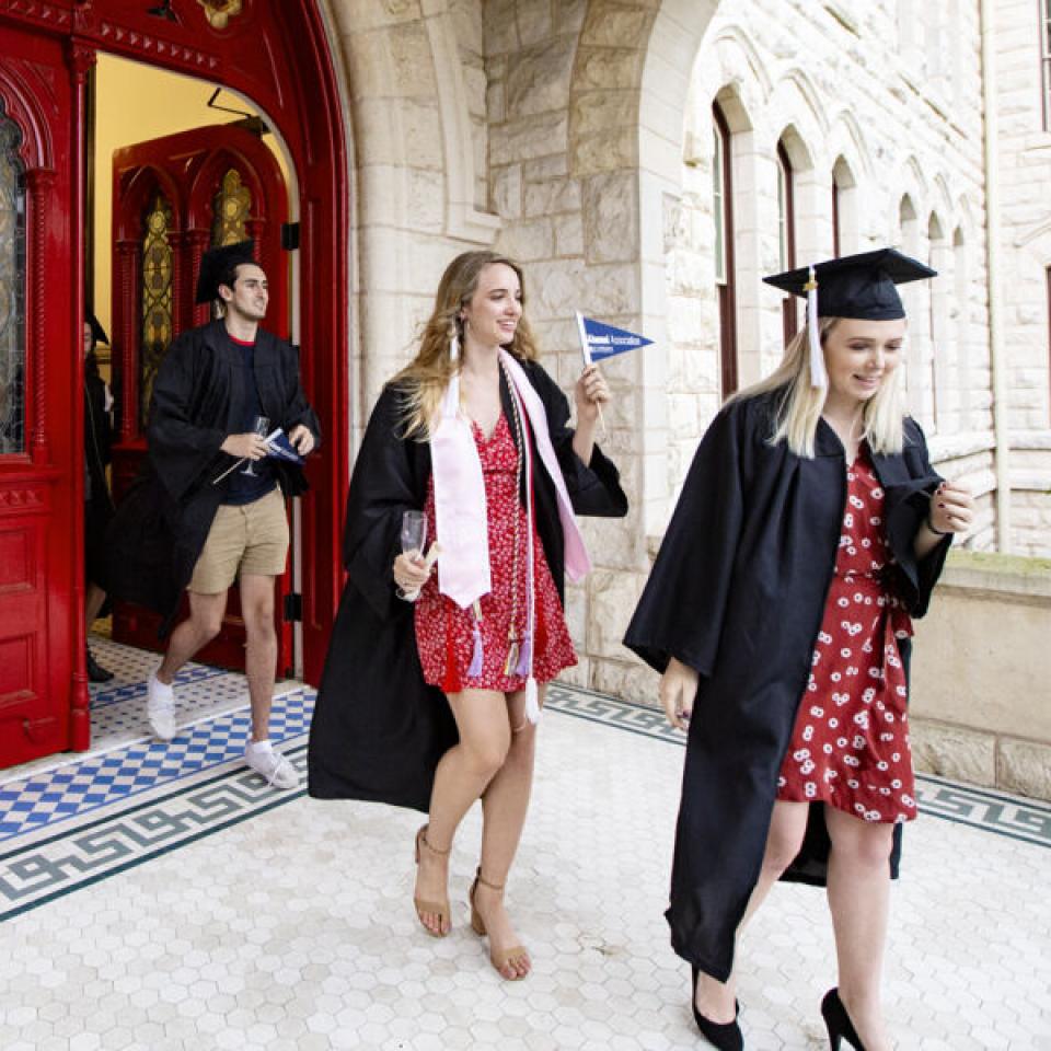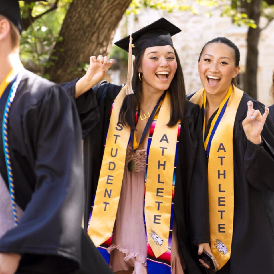 This beloved campus tradition symbolizes the completion of their academic careers and entry in the St. Edward's alumni community. Faculty, staff, alumni, classmates, family, and friends cheer on our graduates and share a champagne toast to their achievements.