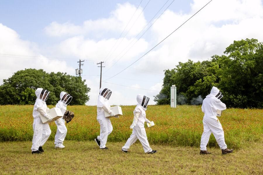In May, Steffenson purchased two 15,000-bee colonies from an apiary in Dallas and, with students’ help, set up the hives. Each colony has a single queen who can lay up to 2,000 eggs a day in the summer. Over time, if the colonies are healthy, they will grow to between 30,000 and 50,000 bees each.