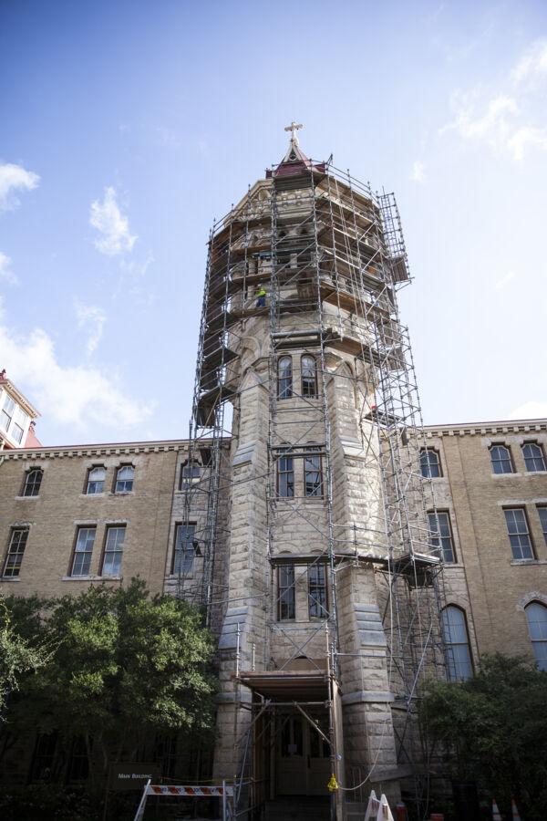 Perhaps the most exciting part of this phase of restoration is one that won’t be easily seen at first glance. This fall, the original bell in the tower of Main Building will ring again for the first time in more than 25 years. The bell, which is being restored, was made in 1904 at the Henry Stuckstede Bell Foundry Co. in St. Louis, Missouri. Throughout its 126-year history, Main Building has relied on community support and donations to preserve and repair the most loved and recognized landmark on our campus. Over the past year, St. Edward’s has received generous support from Main building under restoration.