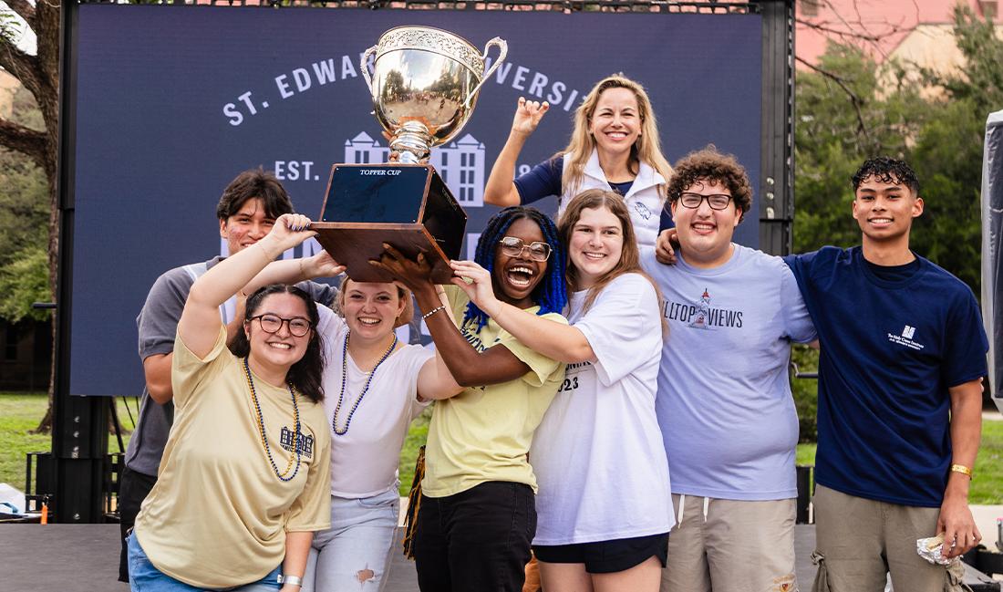 Our dedication to fostering a thriving academic environment and self-fulfillment for all students, faculty and staff has led to another prosperous year at St. Edward’s University. From celebrating first-ever national accolades to uniting with blue and gold pride at historic sporting events or campus traditions, we invite you to take a look back at some of the extraordinary moments that define the success and spirit of a Hilltopper.