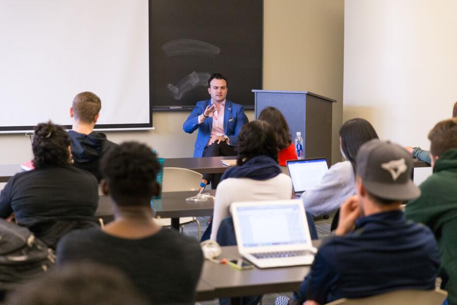 Jeff Miner ’11 returned to the hilltop in early November. He delivered a keynote on marketing in the age of distraction and visited three classes in The Bill Munday School of Business.