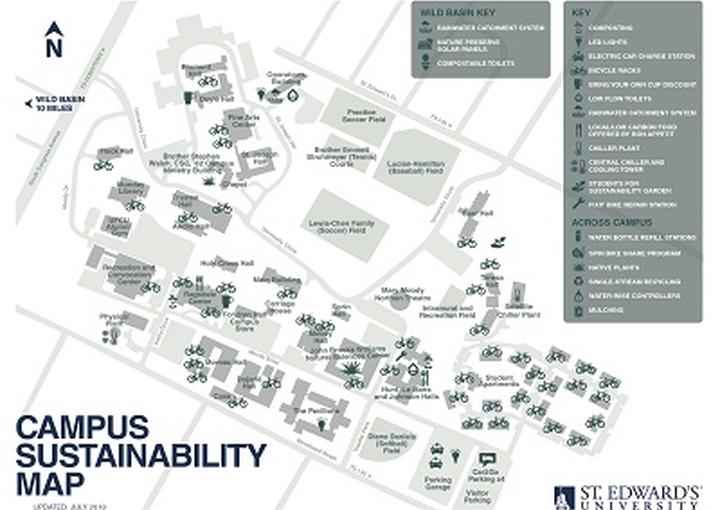 It is achieved through collaborative actions taken across multiple areas of our university, from the buildings we work, live, and study in, to academic and research opportunities, to the food in our dining halls. St. Edward’s recognizes its responsibility in educating and empowering the university community to work together for a more sustainable hilltop.
